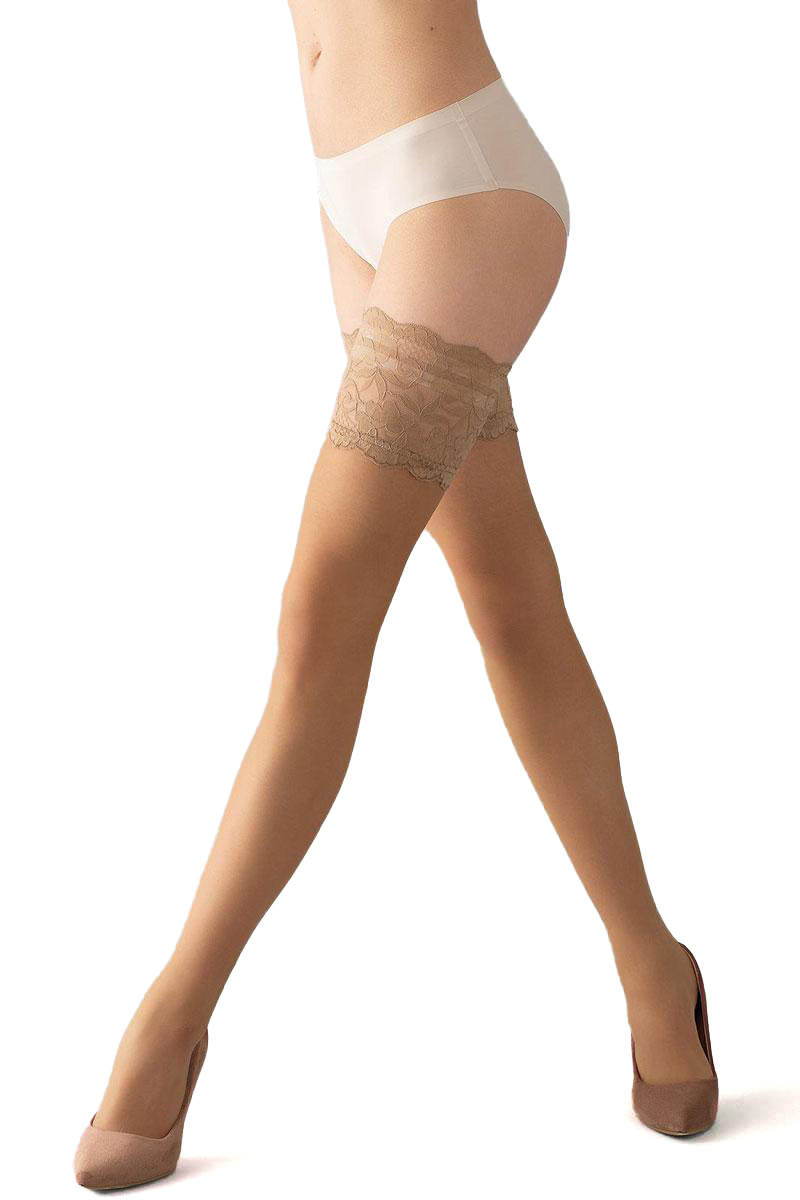 Deze Passion 20 Denier Hold Ups van Giulia bieden een perfecte mix van elegantie en comfort. De stijlvolle Stay Up kousen hebben een glanzend, transparant uiterlijk en zijn voorzien van een extra breed boord met bloemenkant, wat zorgt voor een verfijnde, romantische uitstraling. Dankzij de siliconen band in het boord blijven de kousen stevig op hun plek, zonder ongemak.